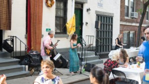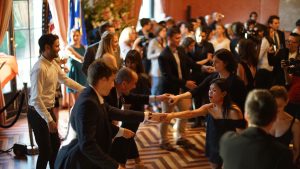 Some 130 members and friends mingled and danced, taking part in a Swing Dance lesson, singing the national anthems, enjoying hors d’oeuvres from Tastings, Jambon de Bayonne, Chandon Sparkling, and Maiden + Liberty wines. A check for $1,000 was presented to Stu Chasabenis of the Boerum Hill School for International Studies. We’re sorry if you didn’t register earlier for this sold-out event. View the program here and see photos, of what you missed.