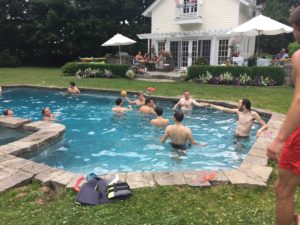 Members got together for an American family-style (with a French touch) Independence Day barbecue and pool party at the lovely country home of members Catherine and Nick.